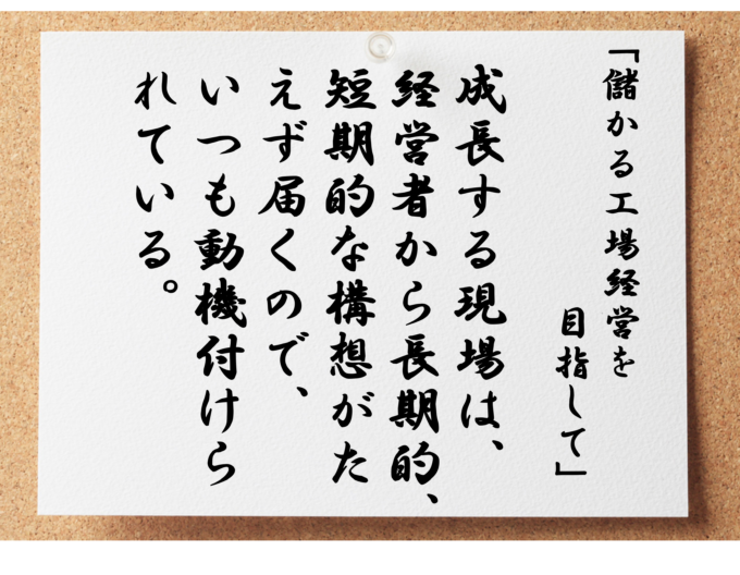 成長する現場は、経営者から長期的、短期的な構想が届くのでいつも動機づけられている