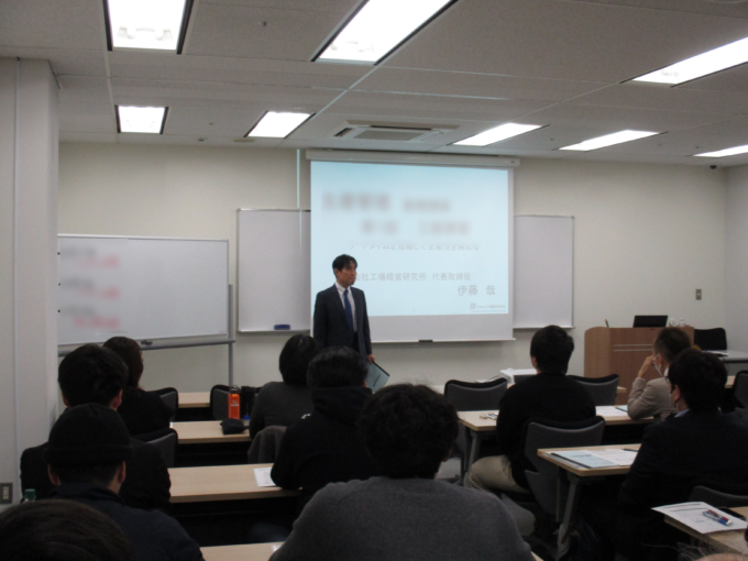 講義冒頭では、「工程管理は工場の管理技術ではなく、収益構造そのものを変える“経営技術”である」という視点から話を始めました。